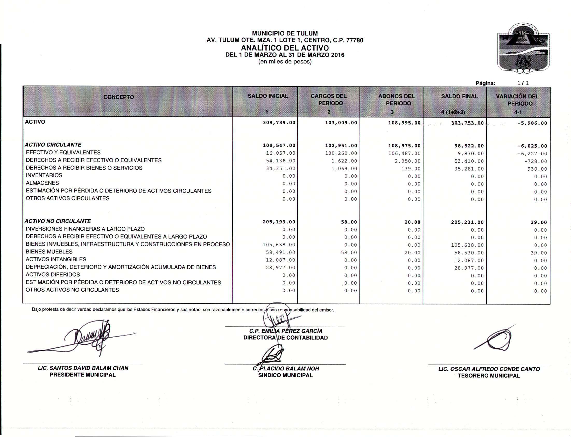 | Edo Analitico de Activo Marzo 2016 | Ver |