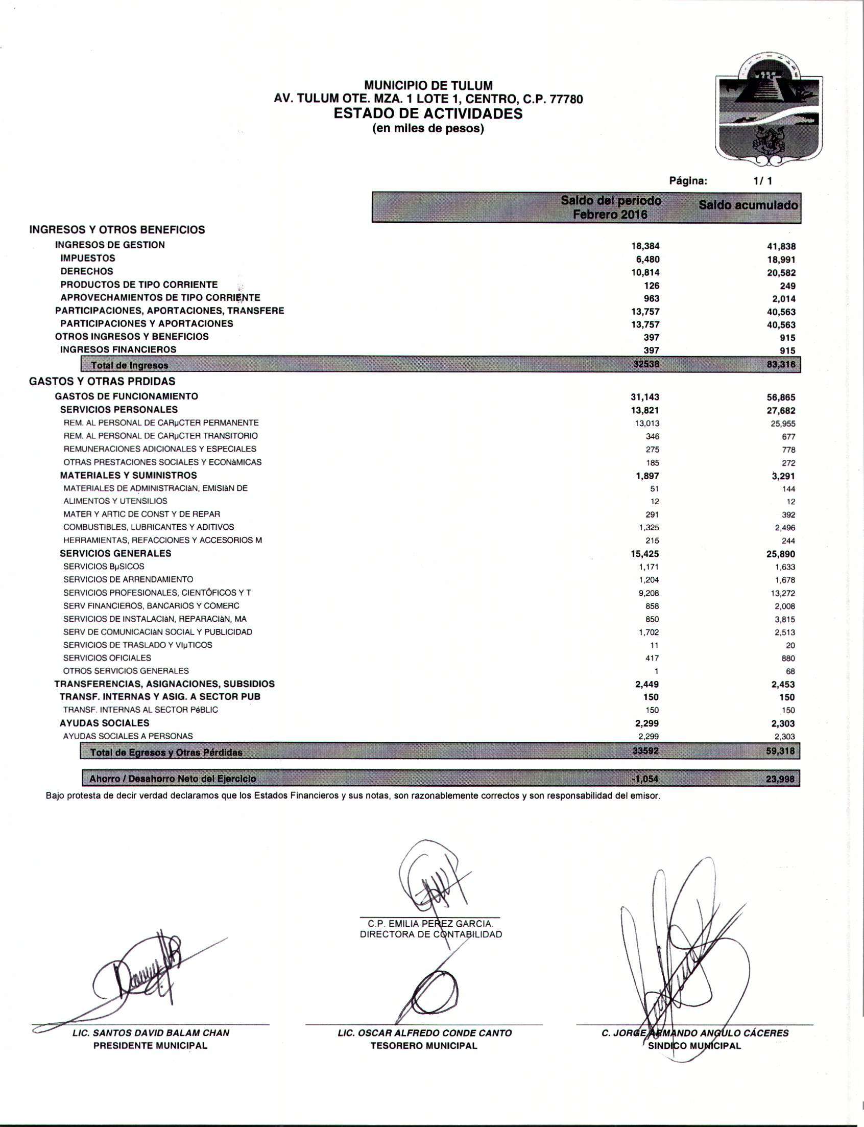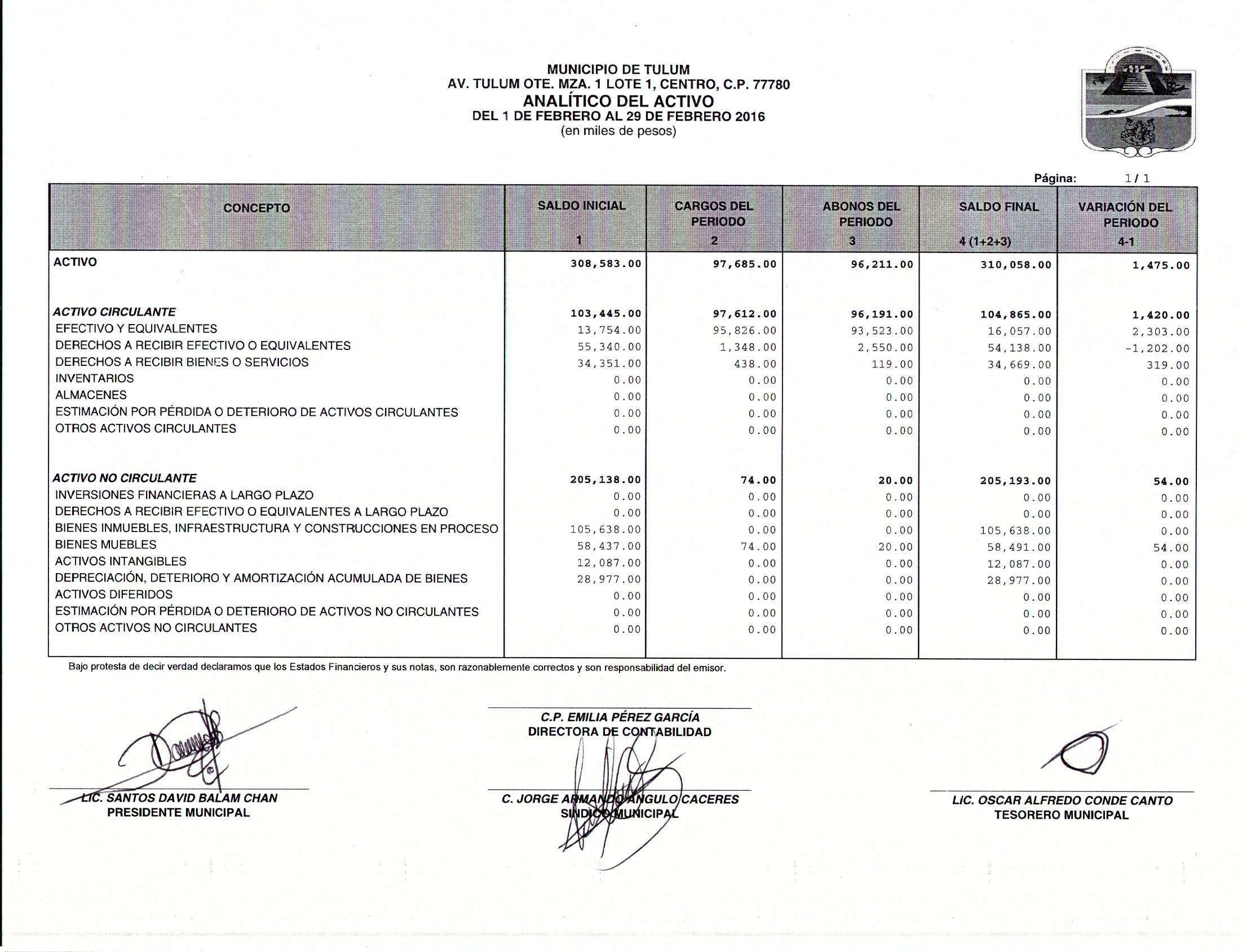 | Edo Analitico del Activo febrero 2016 | Ver |
