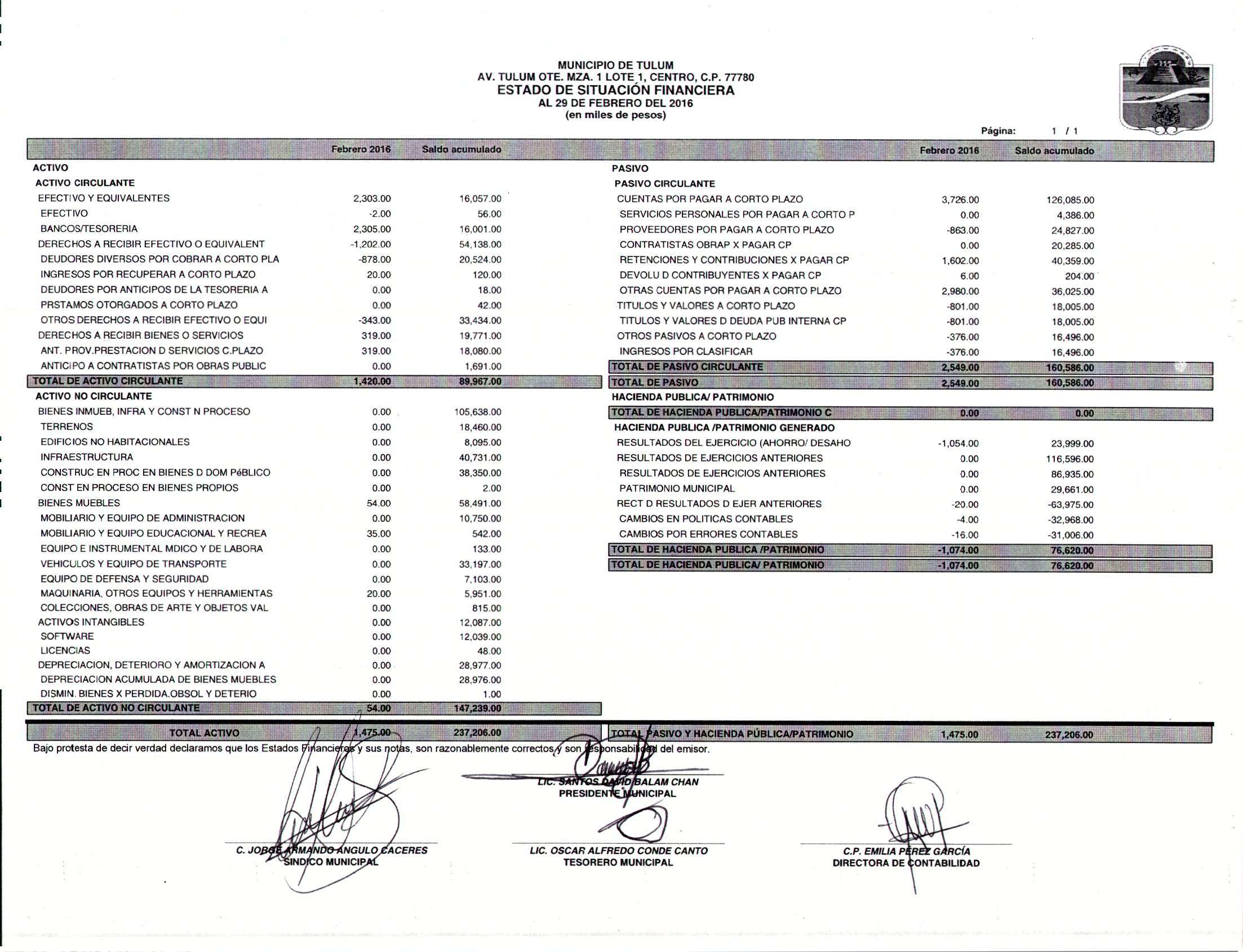 | Edo Situacion Financiera febrero 2016 | Ver |