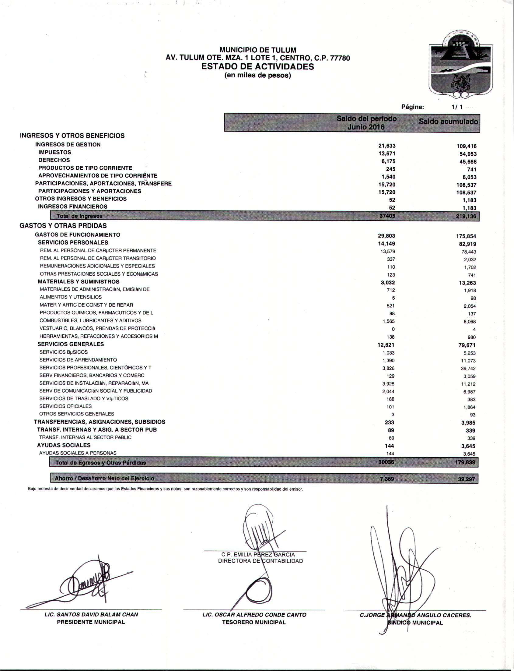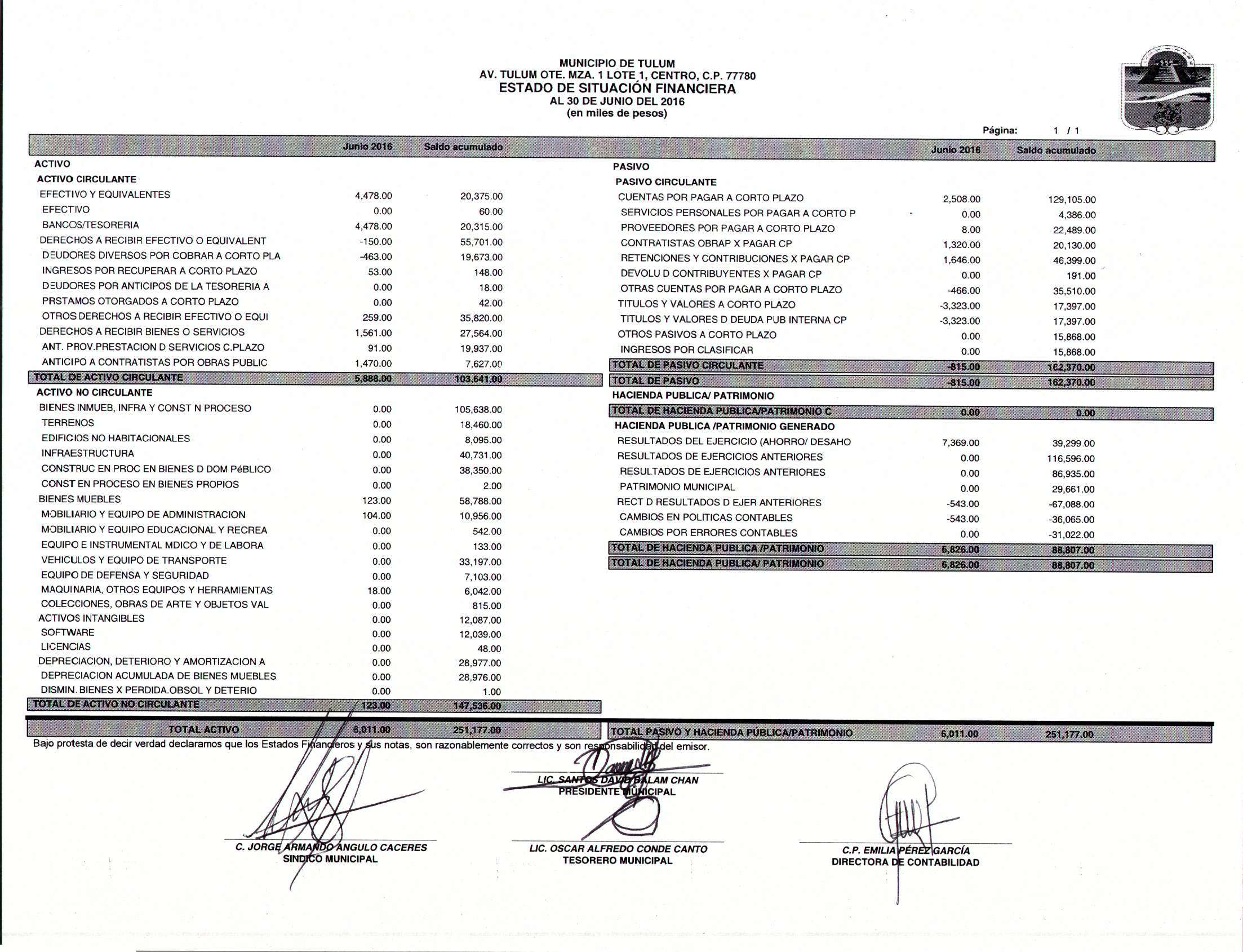 | Edo de Situacion Financiera Junio 2016 | Ver |