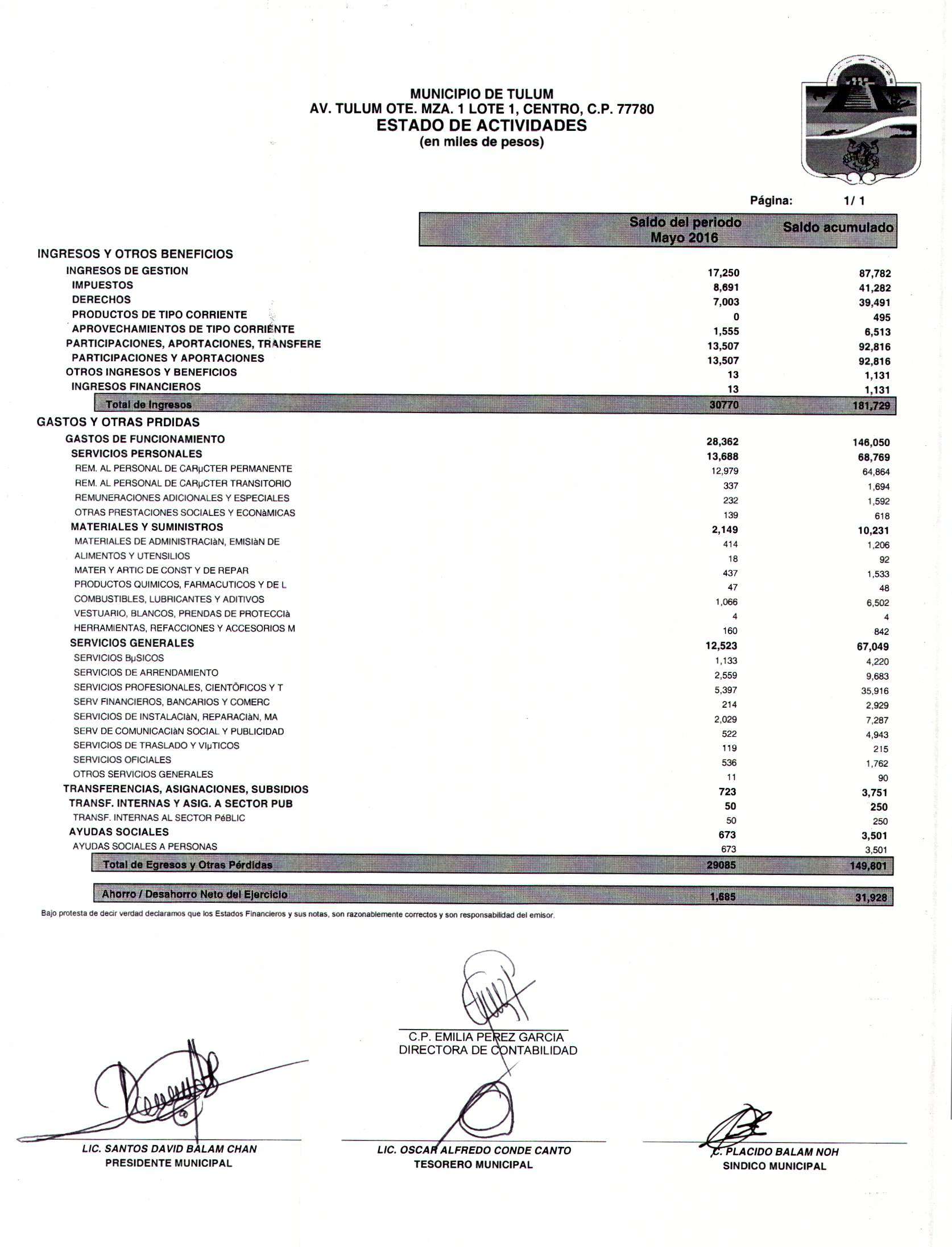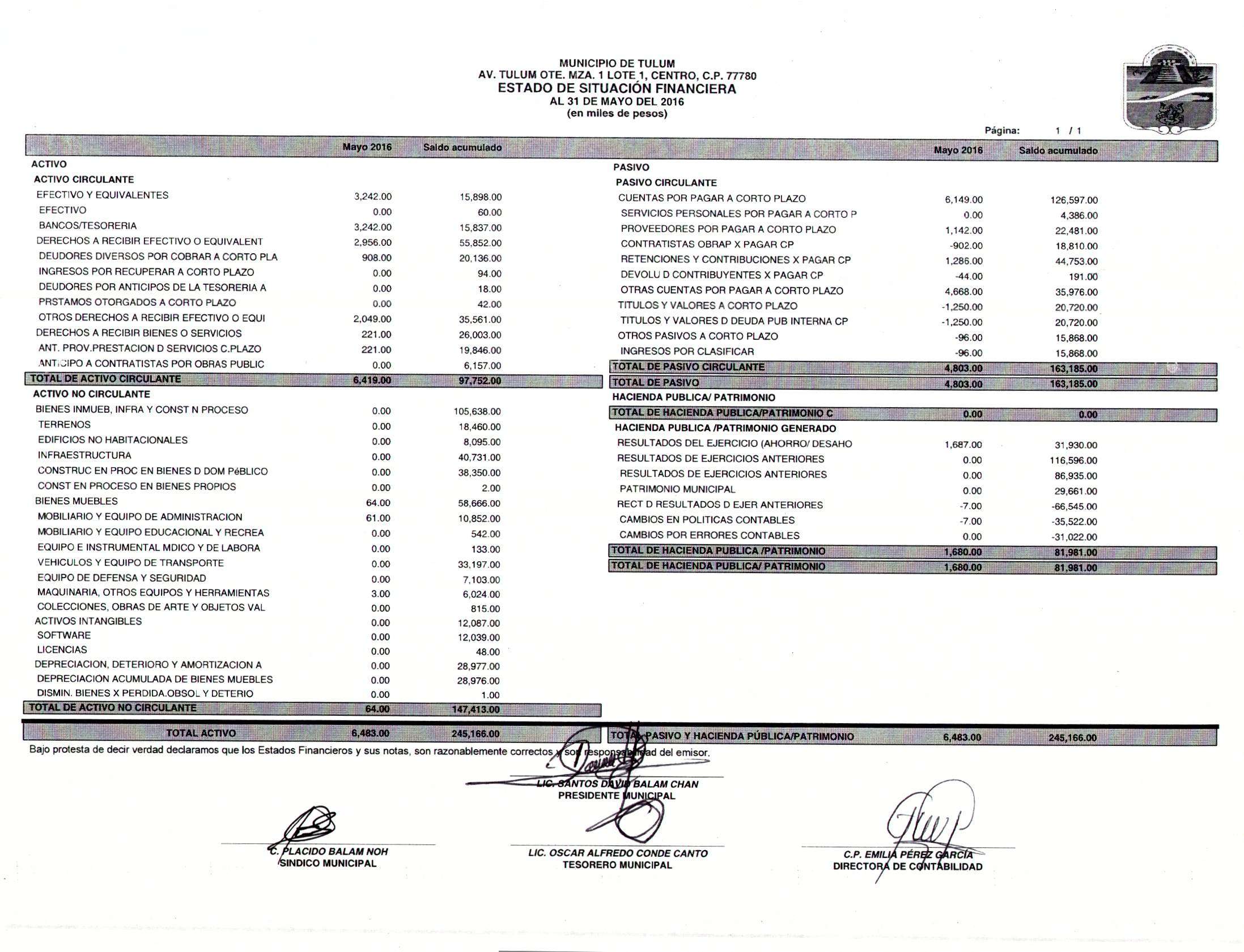 | Edo de Situacion Financiera Mayo 2016 | Ver |