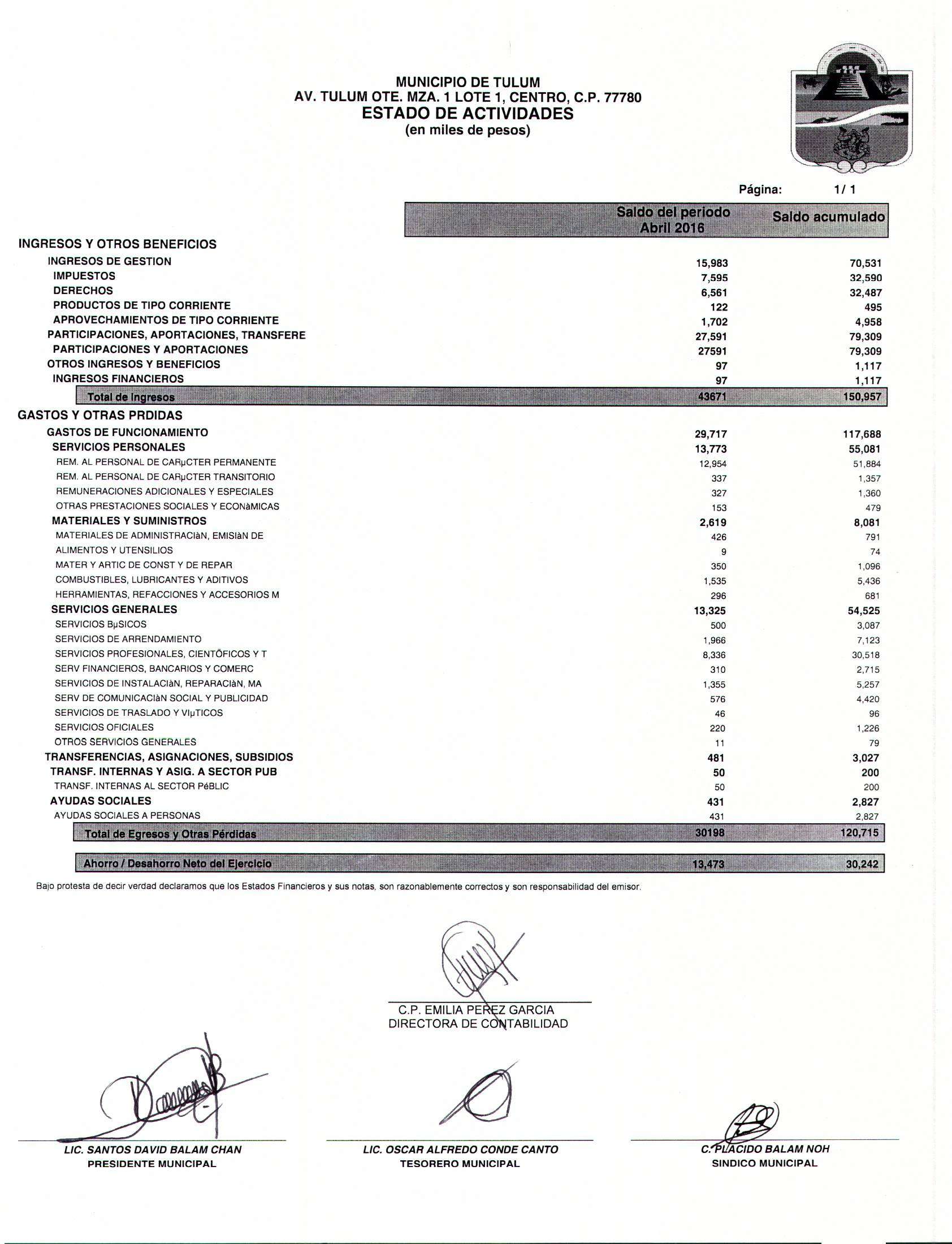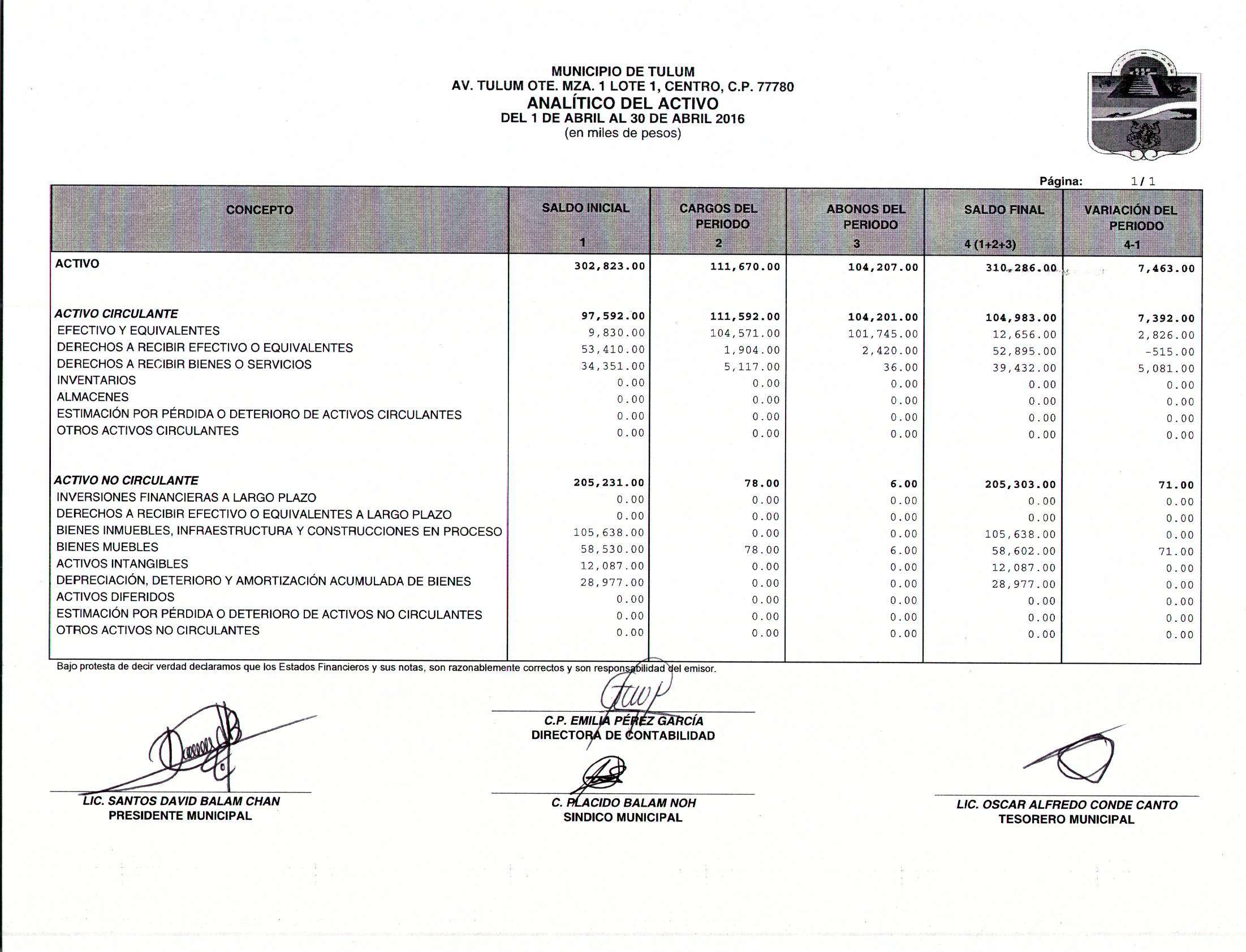 | Edo de Situacion Financiera abril 2016 | Ver |