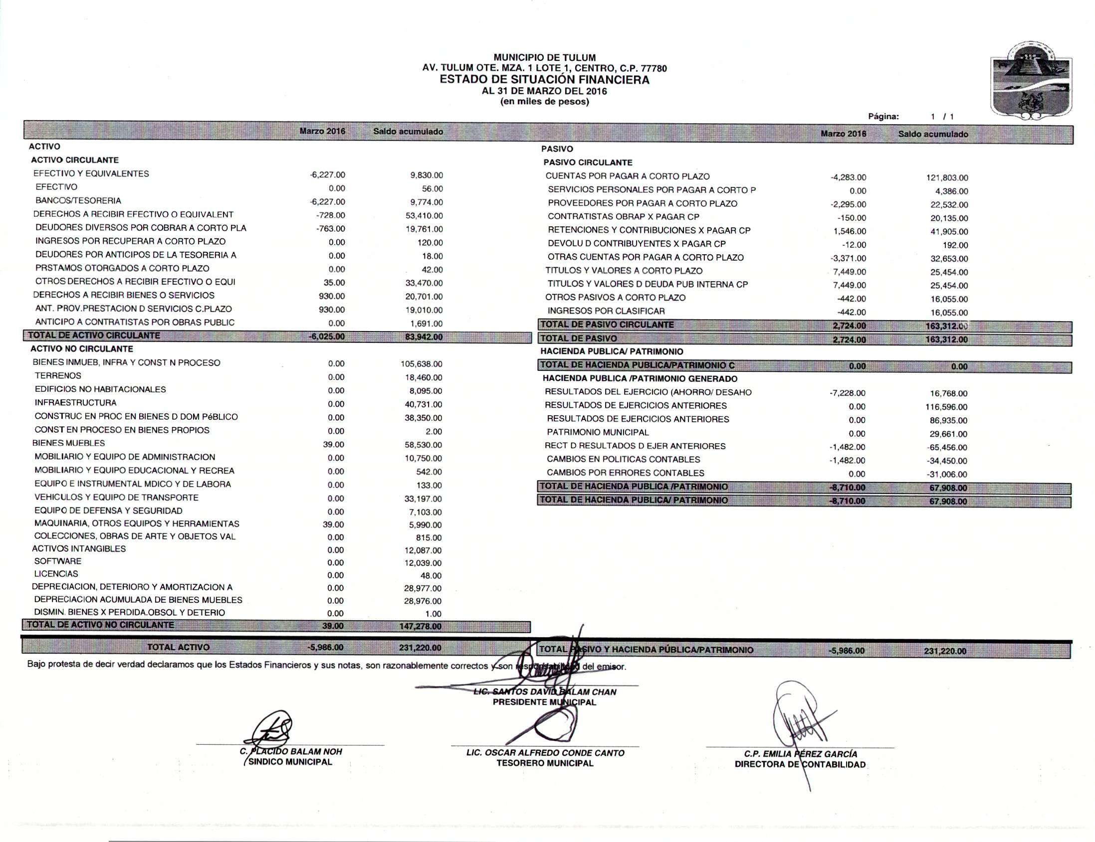| Edo de Situacion Financiera Marzo 2016 | Ver |
